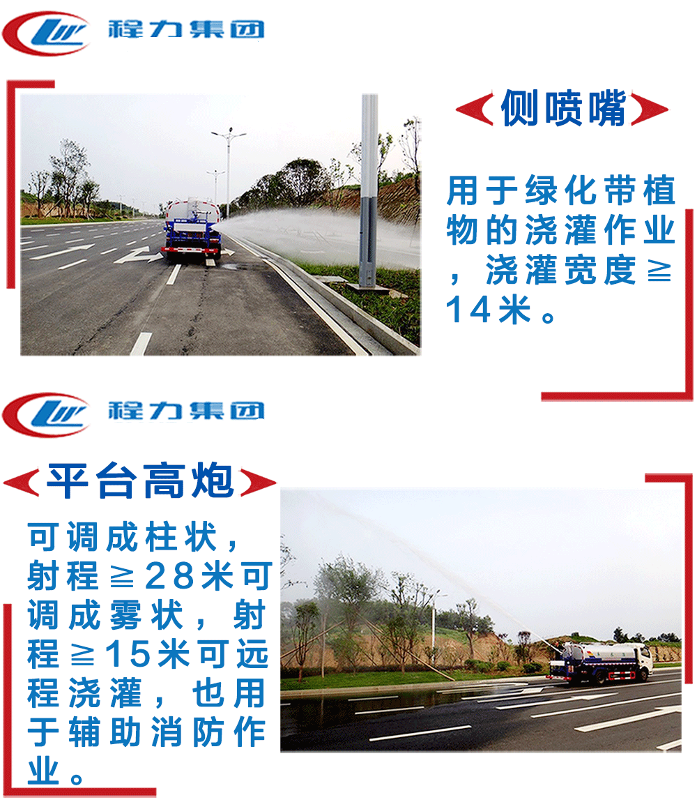 其他 | 該車主要用于城鄉園林綠化灑水,噴藥等;主要裝置為水罐及泵.罐體有效容積12.1立方米.罐體外形尺寸(長×寬×高) (mm): 4000×2400×1550.防護材料Q235B,側、后防護焊接連接,后部防護截面尺寸(寬×高)(mm) 50×100;離地高為530mm.ABS型號為3631010-C2000,生產廠家為東科克諾爾商用車制動系統(十堰)公司.運輸介質:水,密度:1000千克/立方米.選裝罐體后部工具箱.選裝外觀樣式. |