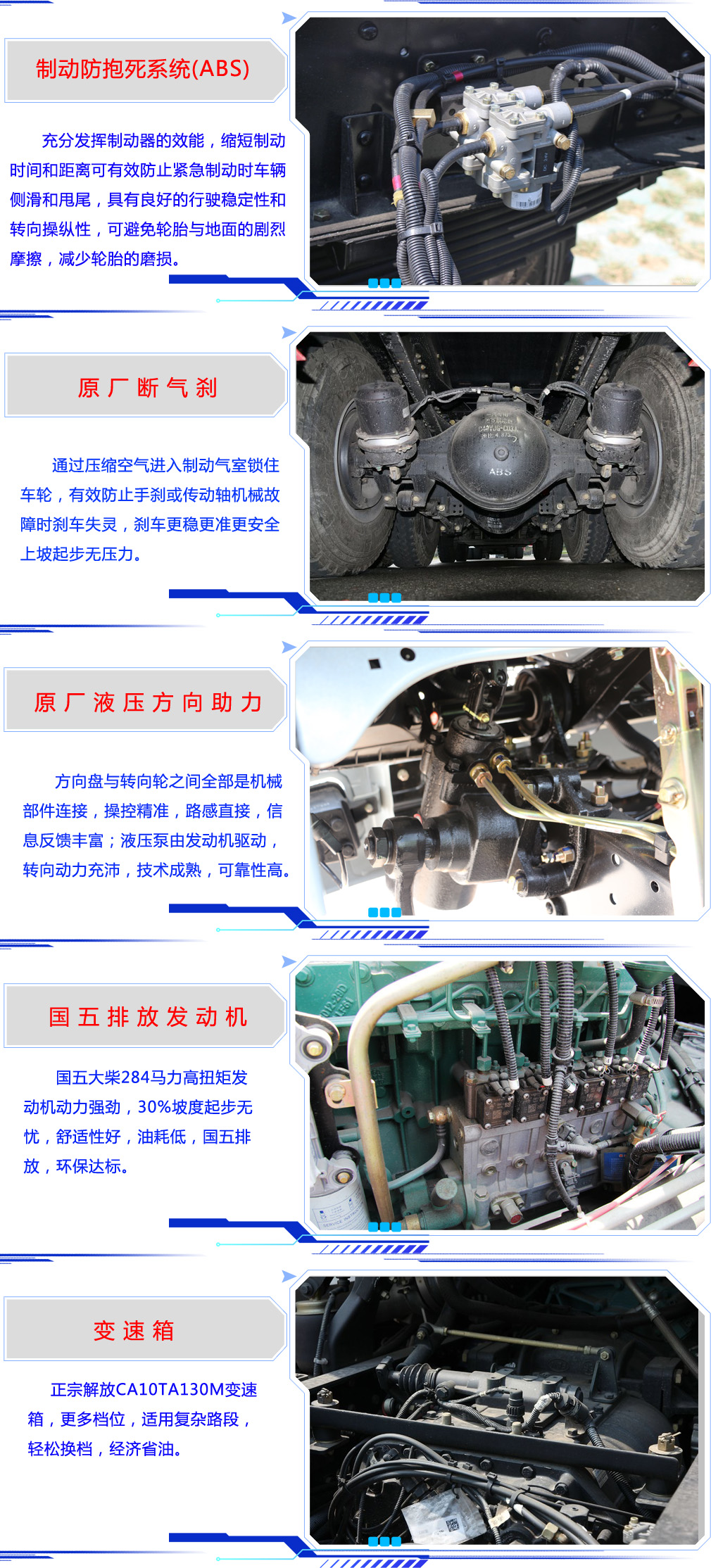 其他 | ABS系統生產廠家:浙江萬安科技股份有限公司,型號:VIE ABS-Ⅱ,安裝具有衛星定位功能的行駛記錄儀.發動機與油耗對應關系:(CA6DK1-26E51,CA6DK1-26E5).36.48,35.8 側,后面防護裝置的橫桿材料為Q235A,焊接連接,后下部防護斷面尺寸110×50mm,離地高度為460mm。整車長/軸距/后懸對應關系為(mm):9700/4300+1350/2650,9700/4350+1350/2600,9950/4350+1350/2850,9950/4600+1350/2600 |